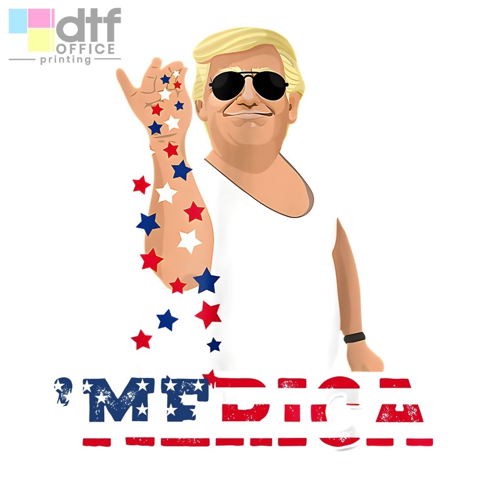 'Merica t-shirt design is both a satirical take on Donald Trump and a symbol of the freedom of expression in the United States. The motif of 'Merica, which is a playful reflection of American culture, is perfect for people seeking an eye-catching display during gatherings like street festivals and parties.