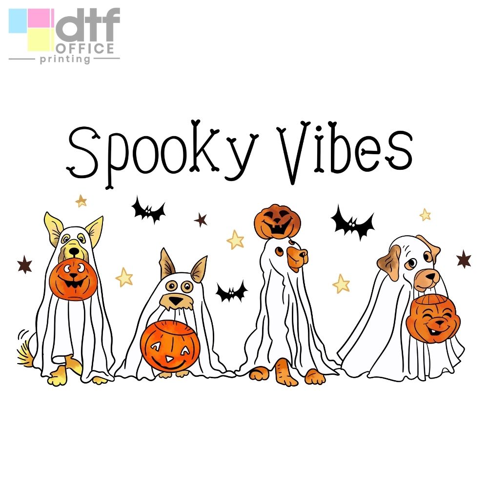 Spooky Vibes DTF Transfer: Bold lettering and spooky graphics, ideal for a classic Halloween look.