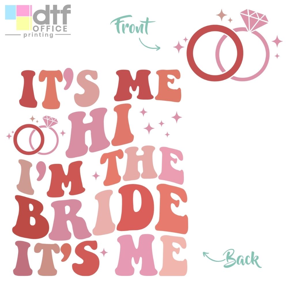It's Me Hi I'm The Bride Front and Back DTF Transfer
