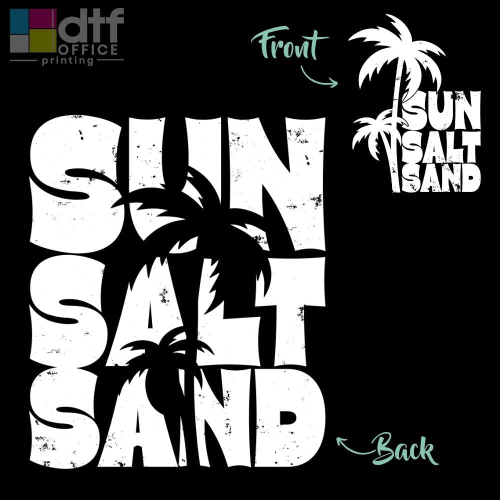 Transferencia DTF frontal y posterior de arena, sal y sol